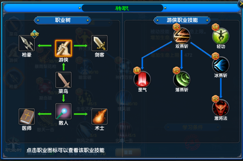 各位大侠在初入江湖时都是以菜鸟为初始职业,该阶段没有明确的定位,仅仅是熟悉新手期的过程,在10级后即可进行一转。