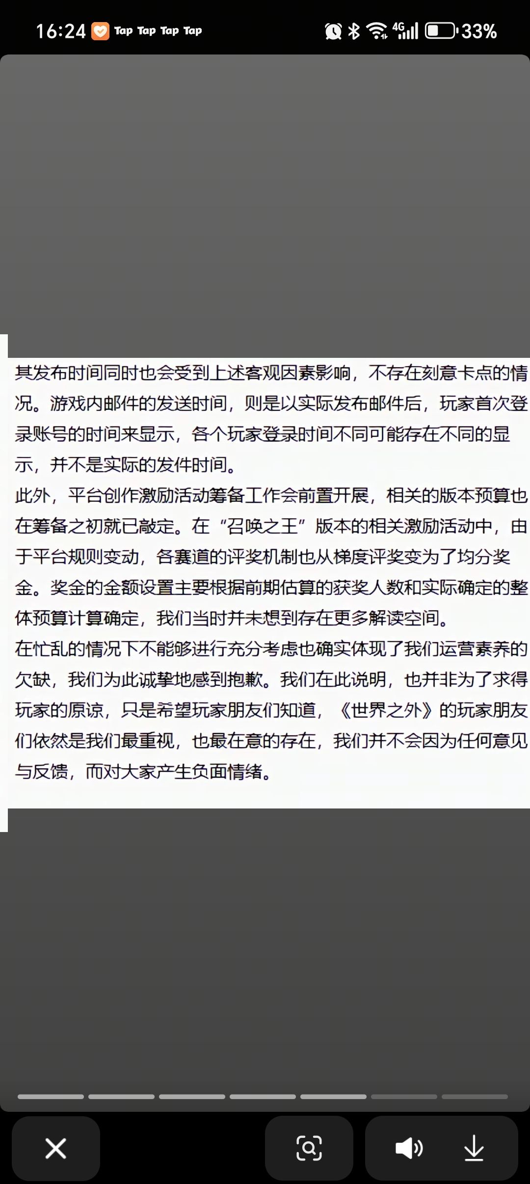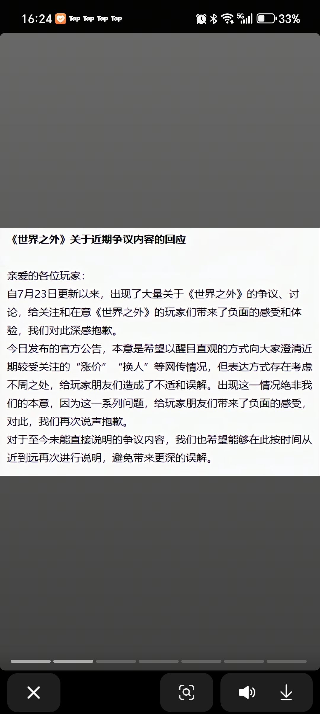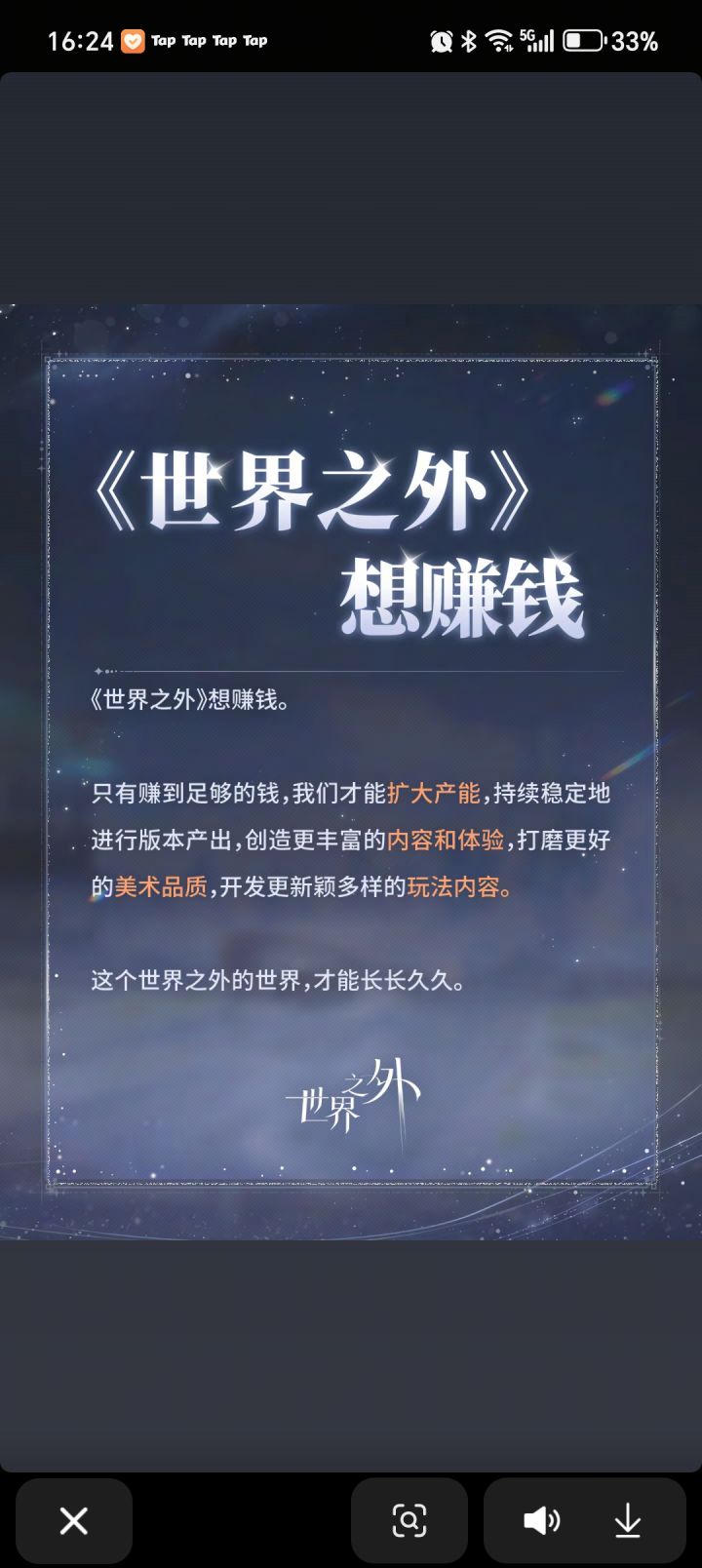 最近,《世界之外》这款游戏可谓是风波不断,官方一系列操作让众多玩家寒了心。今天来,简单讲一下,到底发生什么事了呢,从官方发布的那 9 张回应公告里,看似在解释,实则难以平息玩家们的怒火。