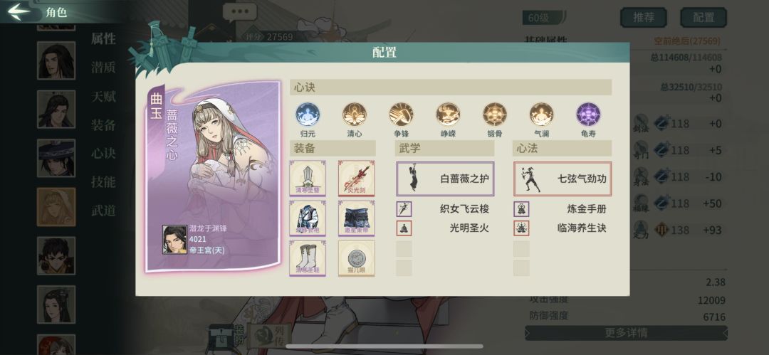 嫌不够暴力,可以把千幻掌法换成见愁枪。环境控制少,心决啸势换刚烈。