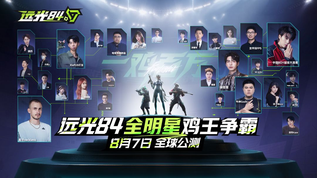 《远光84》全明星鸡王争霸赛,60位枪战高手,20支鸡王小队,四大射击流派巅峰对决——正面刚枪?身法走位?技能组合?还是脑洞破局?8月7日公测当晚,一起见证《远光84》首个百万鸡王的诞生!