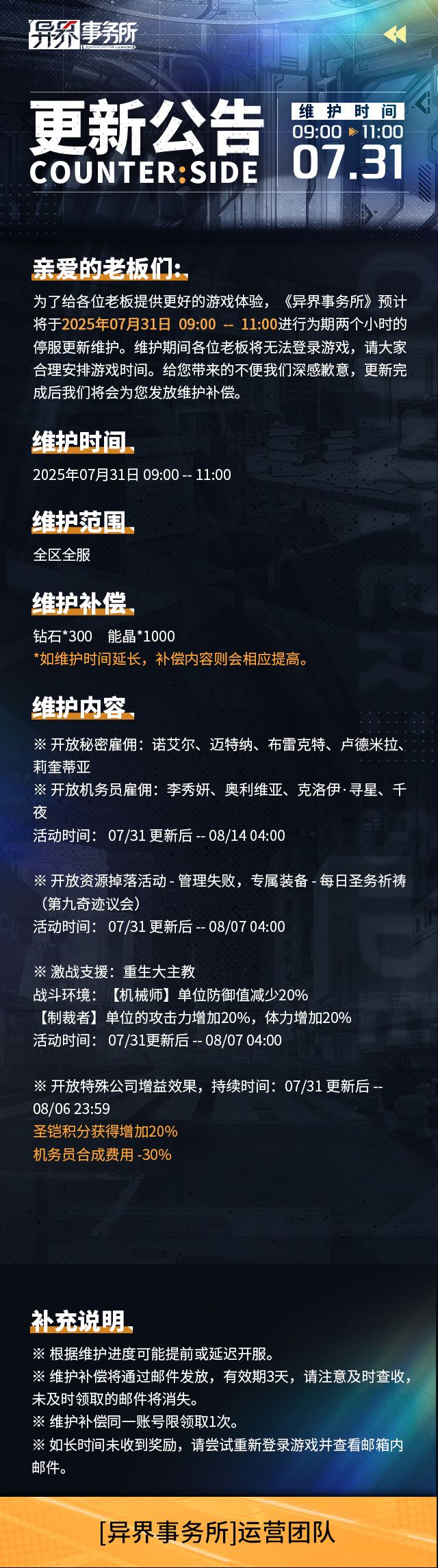 更新情报 | 卢德米拉等觉醒职员、李秀妍等机务员雇佣概率UP