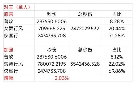单人对王提升2.03%,环境包括:大秘境对王、内桩、竞技场
