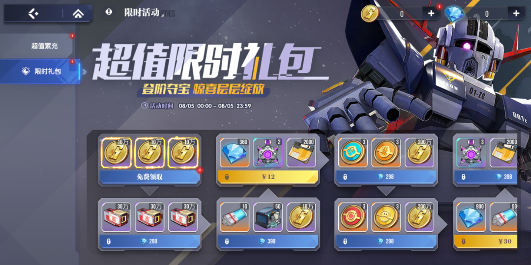 5. 超值限时礼包将于8月5日-8月6日上架。