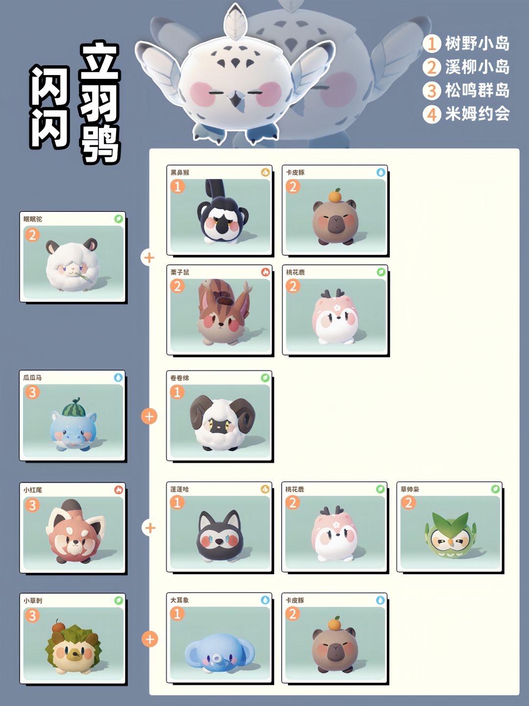 ✅多数米姆的约会配方多达30+种,这里只罗列了相对简单的配方(自身+其它、闪光米姆+其他等未展示),大家可以选择词条最佳的米姆进行配对。