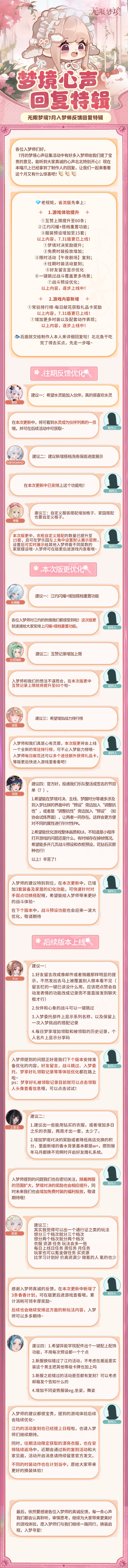意见反馈|7月梦境心声回复特辑