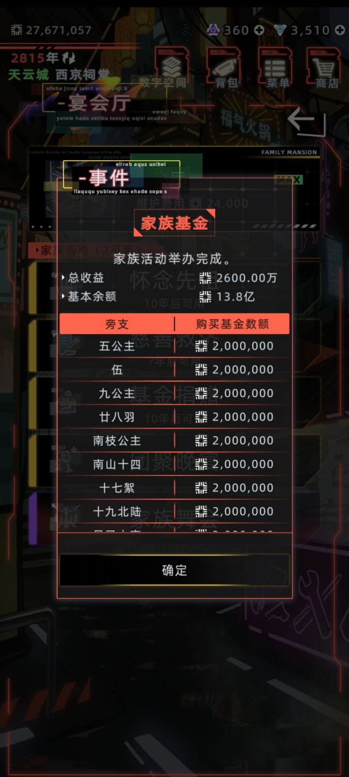 我每年不工作都有收入四五千万,何必去跟支系去抢那每年十来万的收入,让他们自己捐钱自己花吧。