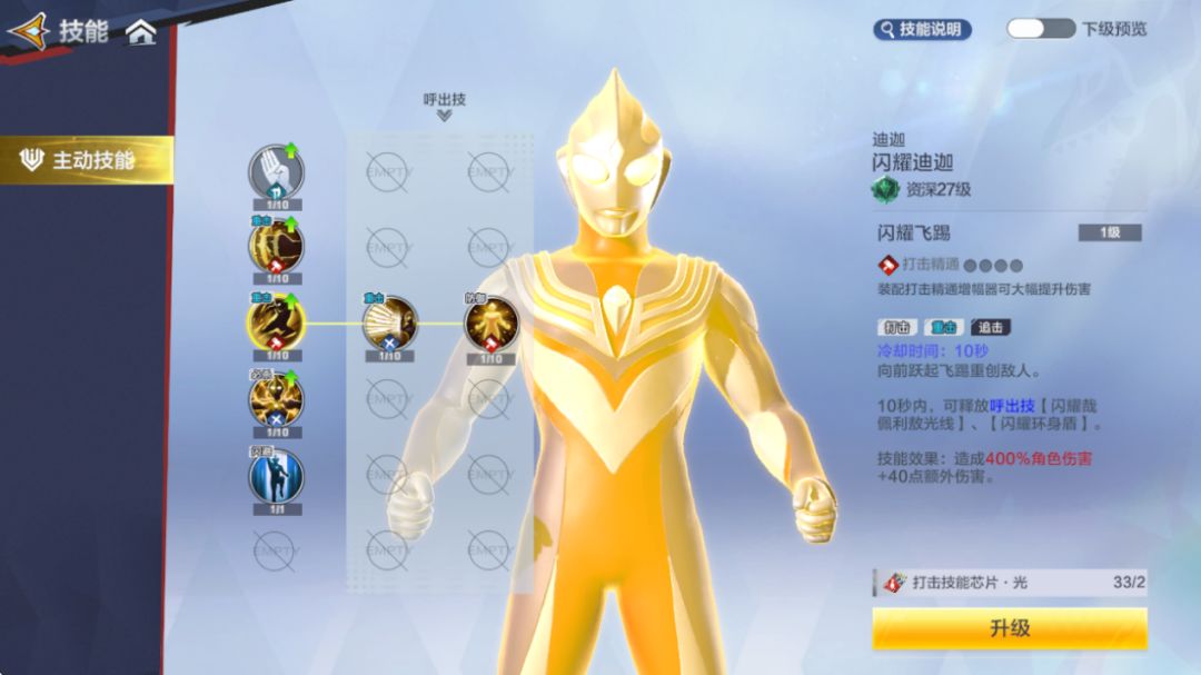 来了,真的来了,真的五块。这个时候就有人要说了“氪金?狗都不氪....”狗不氪,我氪,五块钱的闪迪太香了啊。小编也是直接花费五块巨款,拿下了闪耀迪迦。先看一下技能,三个字总结:数值怪,很全面的六边形战士,纯暴力灌伤害的。