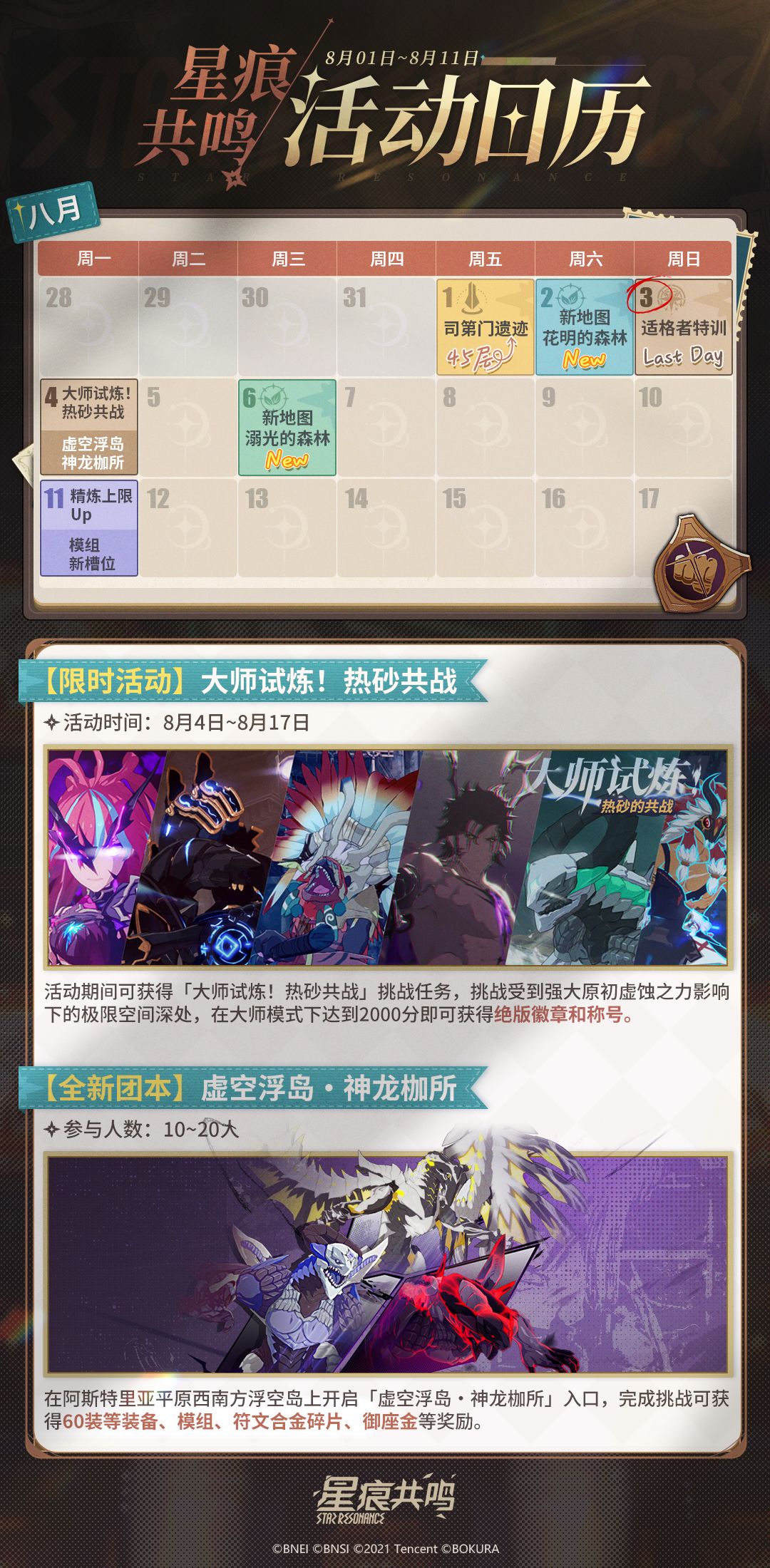 活动日历丨适格者特训即将结束,20人团本开启在即