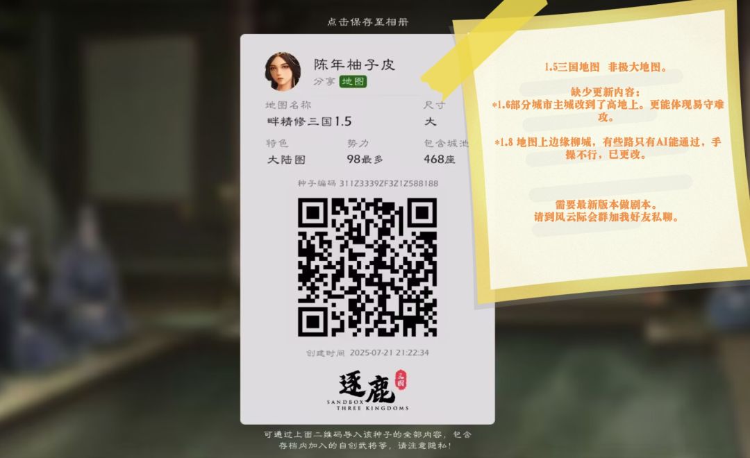 如果有意愿用我地图做剧本,需要最新版本的,可以到风云际会的群中,单独联系我。群号在之前三国地图帖子里,有链接。也可以直接用这个1.5地图按照更新内容自行修改。