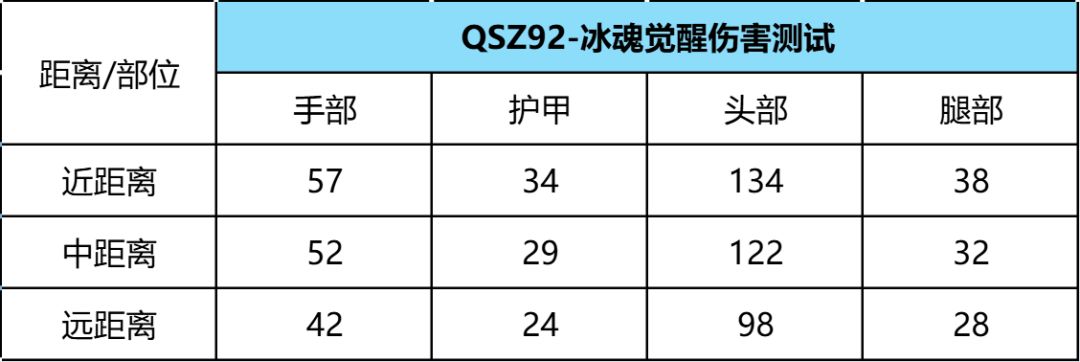 通过实战方面的数据测试后发现,QSZ92-冰魂觉醒在中近距离的表现能力还是十分不错的,命中手部都可以两枪带走敌人,但远距离输出能力中规中矩,甚至命中头部都无法做到一击毙命。
