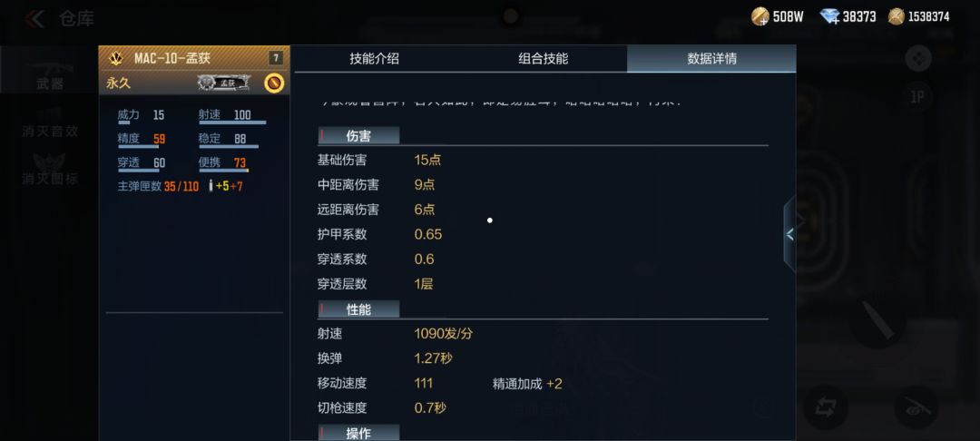 我们可以看到MAC-10-孟获在基础伤害表现能力是十分匮乏的,基础伤害也只有15点,远距离伤害甚至只有9点。但是MAC-10-孟获的射速可是达到恐怖的1090发/分,同时在武器载弹量方面也是明显高于许多副武器的,所以这把武器更像是一把冲锋手枪。