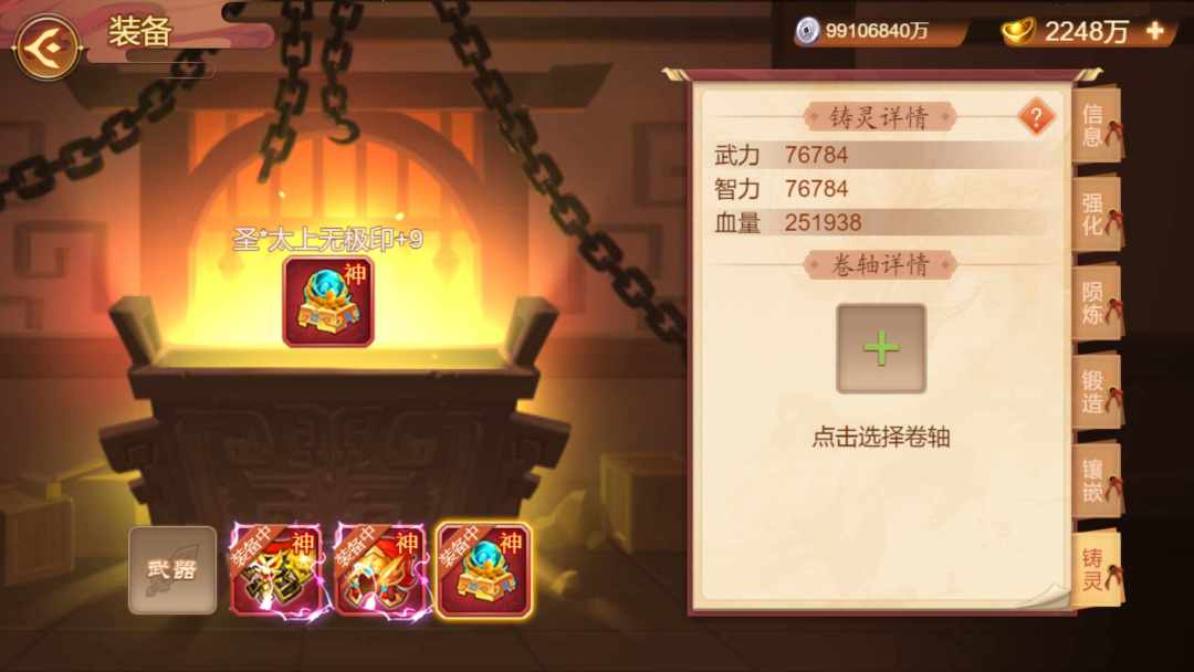 饰品装备开启铸灵系统。