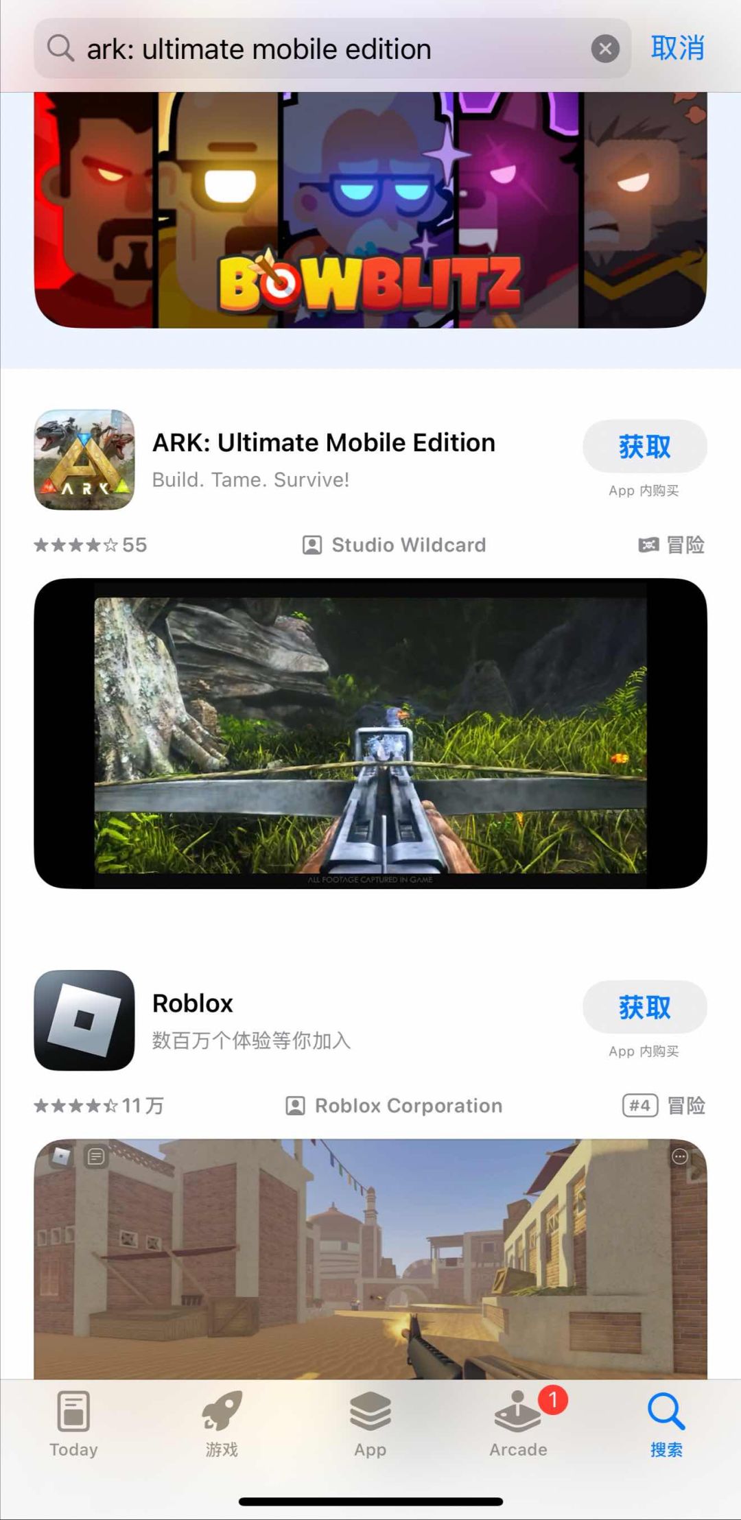 第一步:AppStore登录外区商店,搜索【ARK: Ultimate Mobile Edition】即可下载游戏
