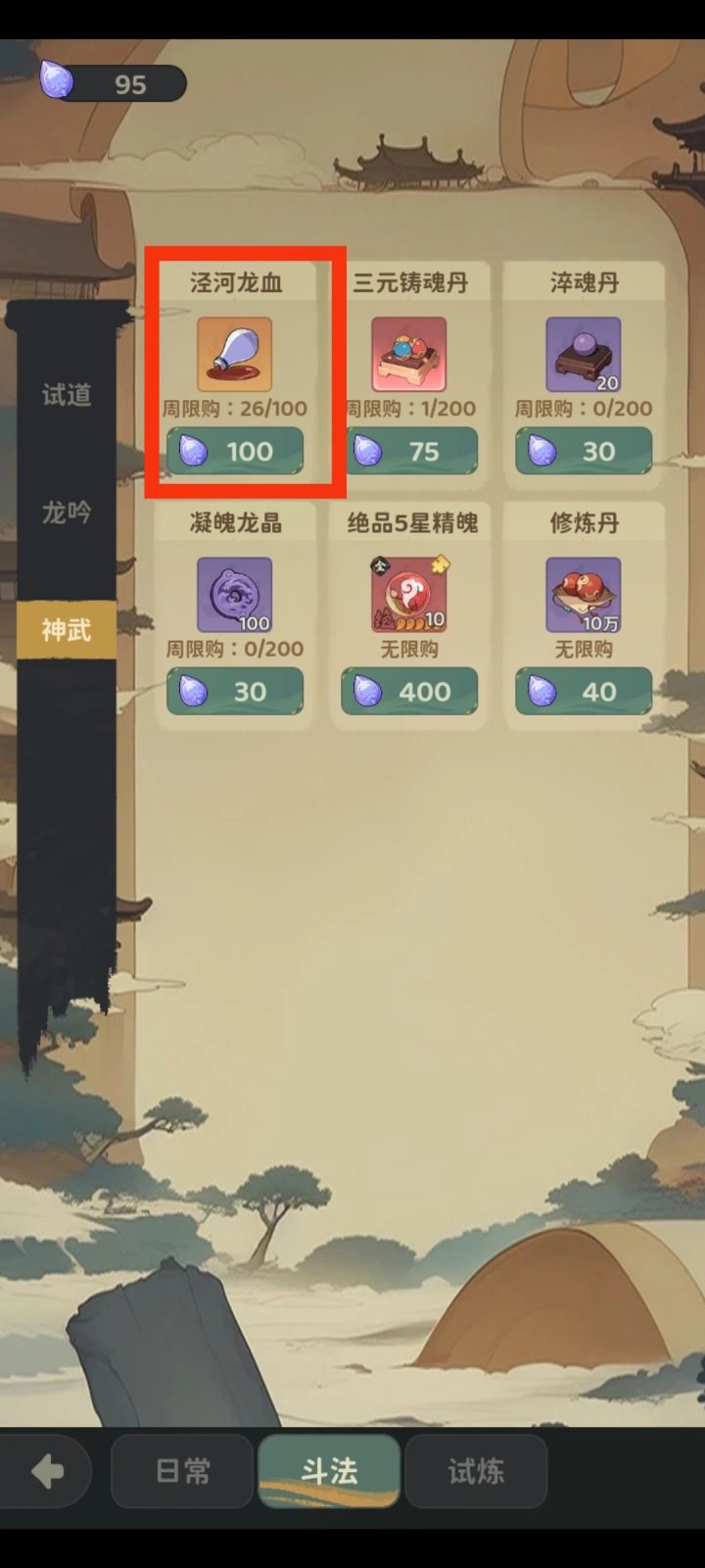 抽龙魂的龙血可以在坊市换,建议全换龙血,去赌运,换的币的唯一途径就是决战神武,其实就是冲榜活动,氪佬们一般都是强强联合,平民玩家只能在每天22点结算前看能不能偷榜。龙血我建议攒够10个才召唤,出龙的概率会高一点。