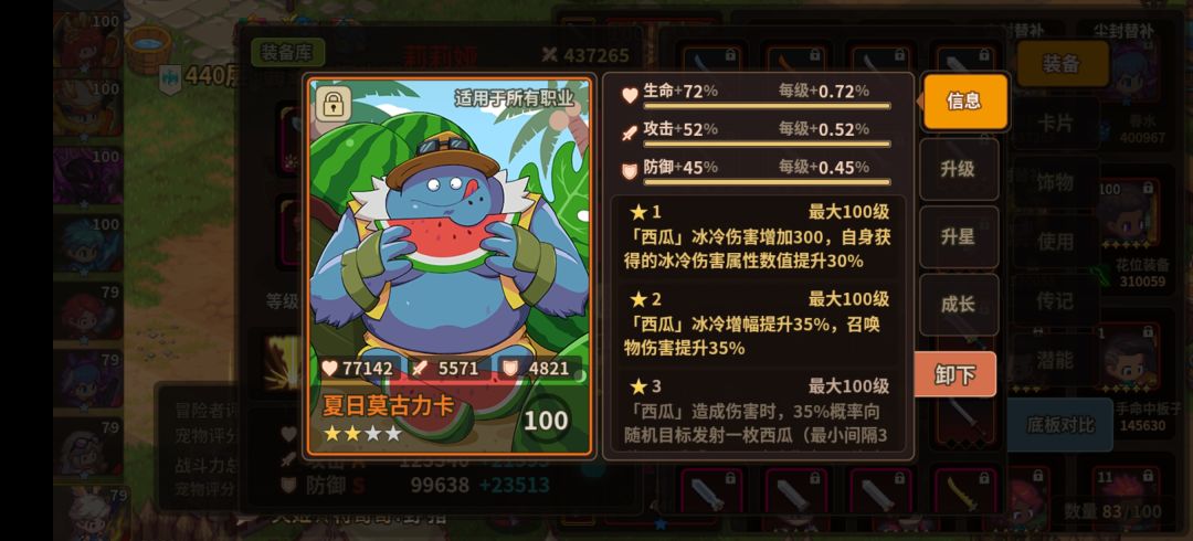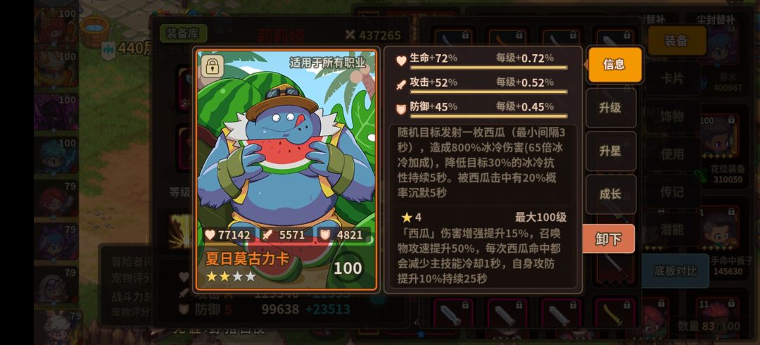 冰瓜满成长 72 血 52 攻 45 防