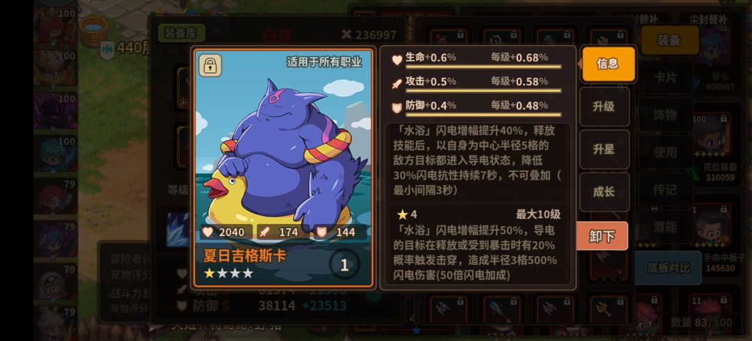 电鸭满成长 68 血 58 攻 48 防