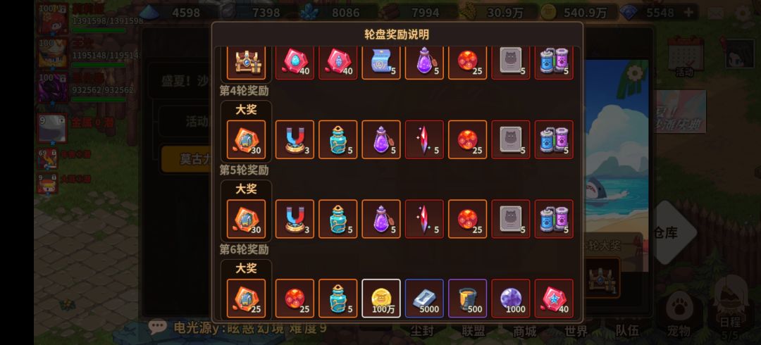 1 - 3 轮缺啥拿啥(宝石是大奖,不用担心)