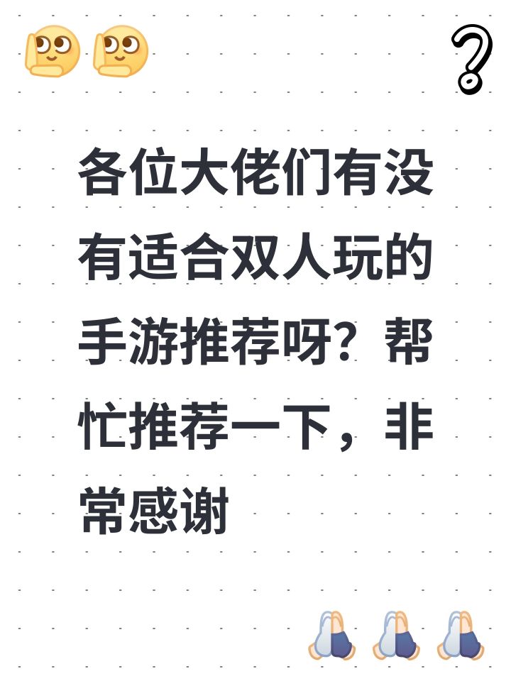 各位大佬们,有没有适合双人玩的手游推荐呀?
