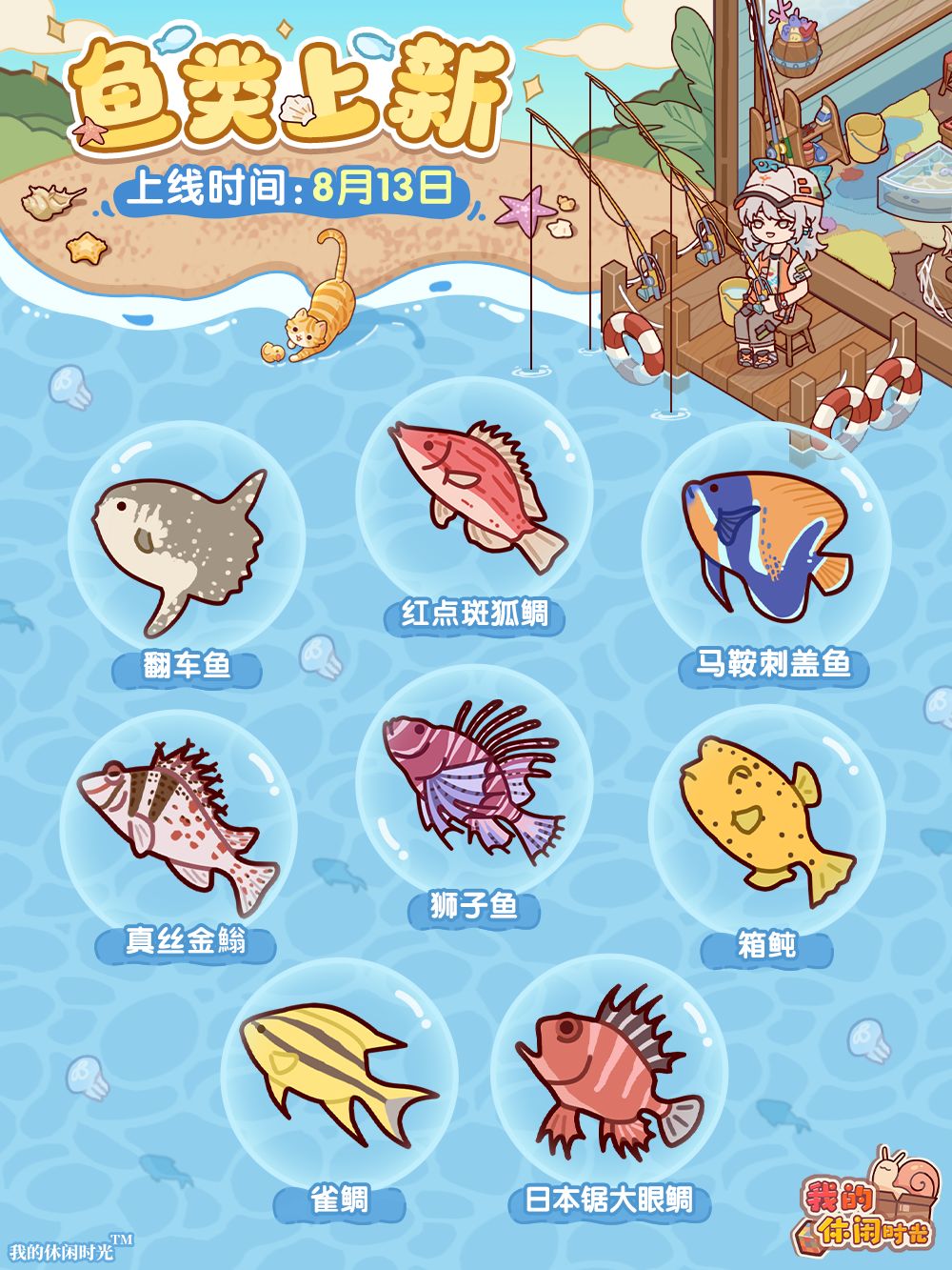 🎣8月13日停服维护结束后,朝夕渔店即将迎来一批新的鱼类,钓得相应的鱼还可在「手工坊」兑换全新家具!同时,