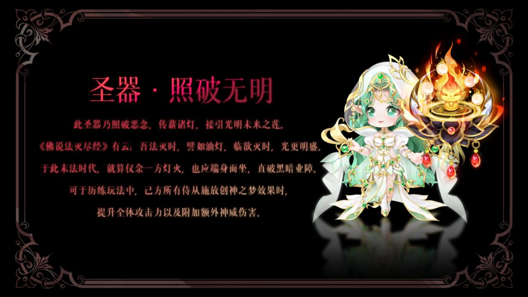 1、新增130资质圣器:照破无明,在【女皇装扮-时空-时空武器-圣器】中解除照破无明的封印,己方侍从进入创神之临总次数达到2次后即可触发圣器降临效果;培养圣器,还可为全体侍从、灵妖提供属性加成