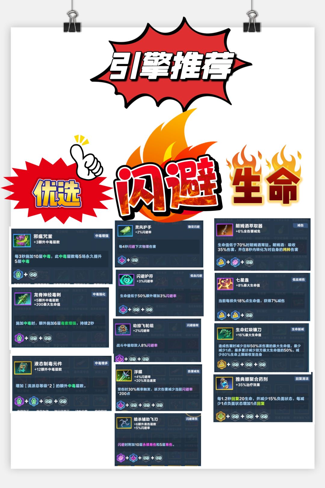 血量低于20且没有保命金卡建议拿保命神器:不死鸟、救救我、蛛网斗篷、治疗药水…