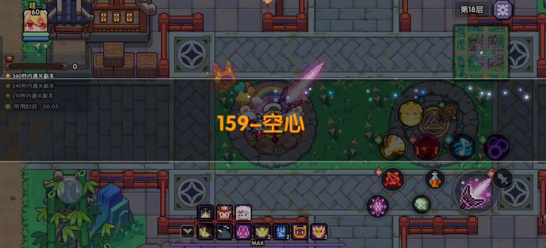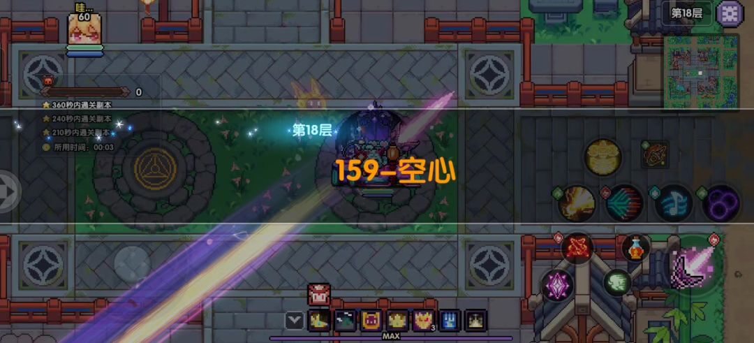 练度足够的情况下不带武器只带符文和一个技能也是足够应付18层的群怪的。新火也可以尝试同样的配置,新火的技能相比三三伤害更高,对付群怪更加强力,但没有三三的高额属伤,中练下可能很难靠一个觉醒击败BOSS。