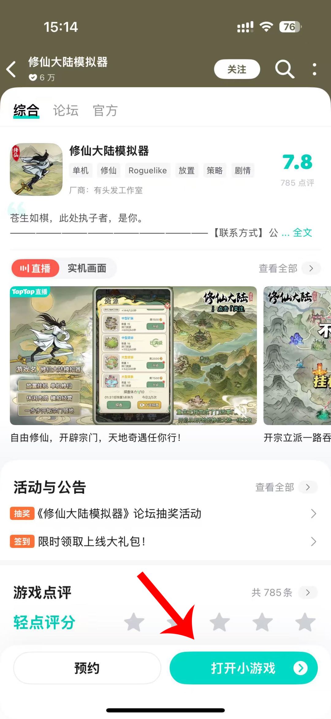 各位ios设备的用户久等啦,我们在苹果端上架了小游戏版本,大家可以点击截图里红色箭头所指的【打开小游戏】按钮即可体验哦!
