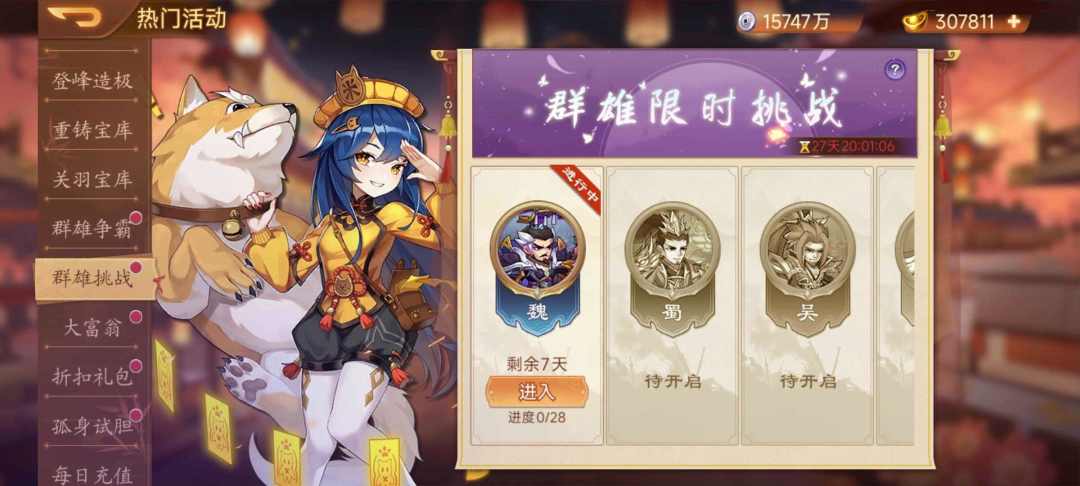 活动内容:活动期间开启限时副本挑战,活动副本共有7层,每层4关,每次过关可获得奖励。每日解锁一层可进行挑战。