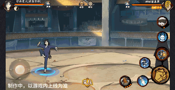 武当花火的普攻共6A,前3A推掌平推,4A向前突进,5A旋转数圈后将敌人拉回,旋转时有短暂无敌,6A用力侧踢。