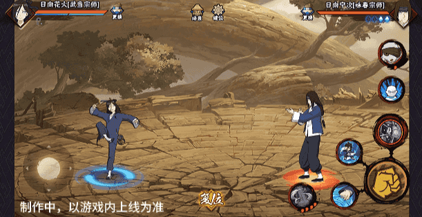 当黑白能量攒满后可释放奥义,武当花火挥动拂尘缠绕敌人,随后敌人被卷入龙卷之中,武当花火运功将周围的银杏叶一齐汇聚,以一记八卦空掌将其打出,敌人在飞舞的银杏叶中被击飞终结。