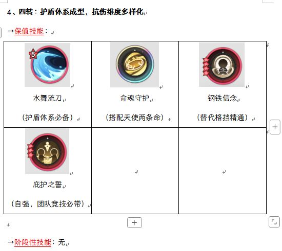 能玩到四转,基本上都有了自己的理解,四转最大的变化来自于护盾体系的成型,有了几个固定的组合: