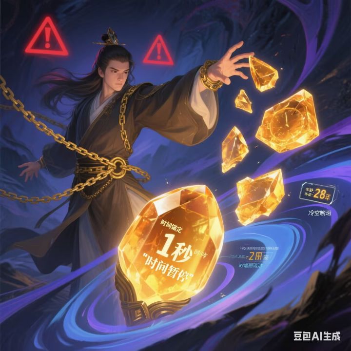 1. 残片博弈:在“时空乱流区”捕捉漂浮的时间残片,过去残片呈琥珀色(回溯伤势),未来残片呈靛蓝色(预演攻击),但捕捉时50%概率触发“时间锚定”——自身定身2秒,期间承受2倍伤害。集齐3组相同残片可合成“时空琥珀”,使用后获得1次“时间暂停”(持续1秒),但冷却时间等于自身年龄(年)。