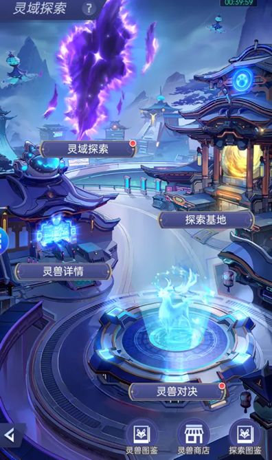 通过“历练”界面下滑到最下面的“灵域探索”进入。灵墟探索主要玩法分为:灵域探索、探索基地、灵兽对决、灵兽详情。