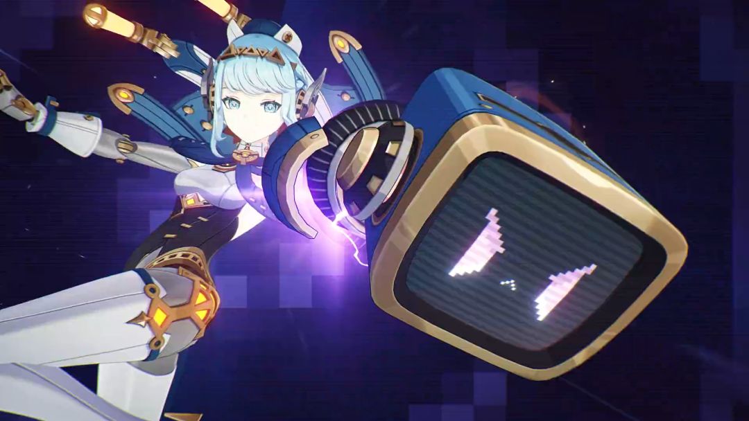 进入战斗状态时,伊涅芙会启动涤净模式:首先展开绝缘屏障,然后召唤出多用途智能辅助单元“薇尔琪塔”,持续释放半圆形的雷元素冲击波。当需要执行全域扫灭指令时,薇尔琪塔会先与伊涅芙的左臂结合,再以火箭飞拳的形式发射出去,对敌人进行范围攻击。