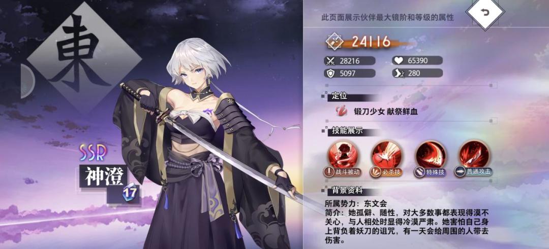 神澄以妖刀斩断目标,对单个敌方单位造成攻击105%的伤害。