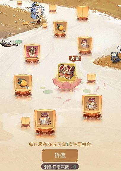 1、活动期间每天有1次充值指定金额获得许愿的机会;