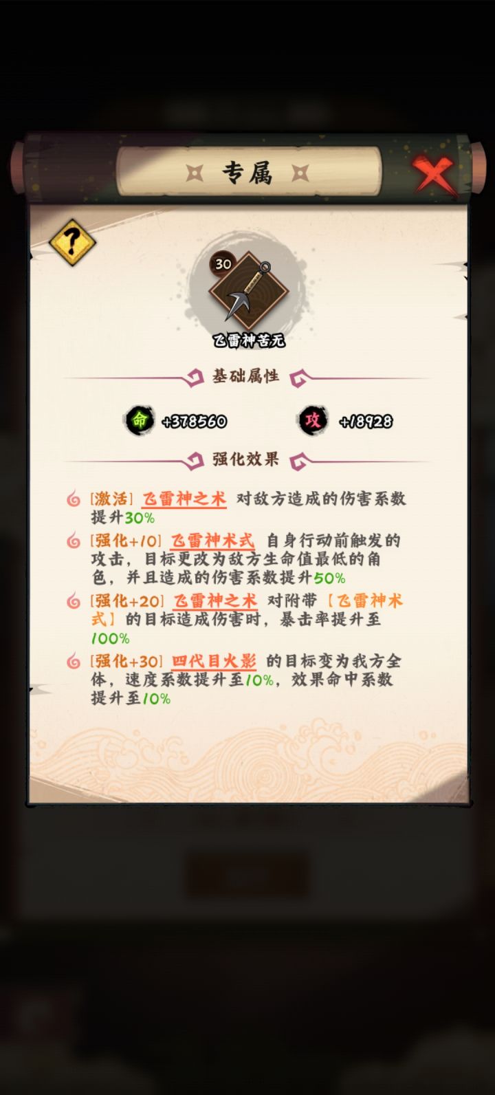 无 :跟三船一个毛病,没有暴击和爆伤。开局2连也秒不了人,每回合俩次普攻,跟止水做一桌。对位到纲手直接烂掉,一辈子也打不死。