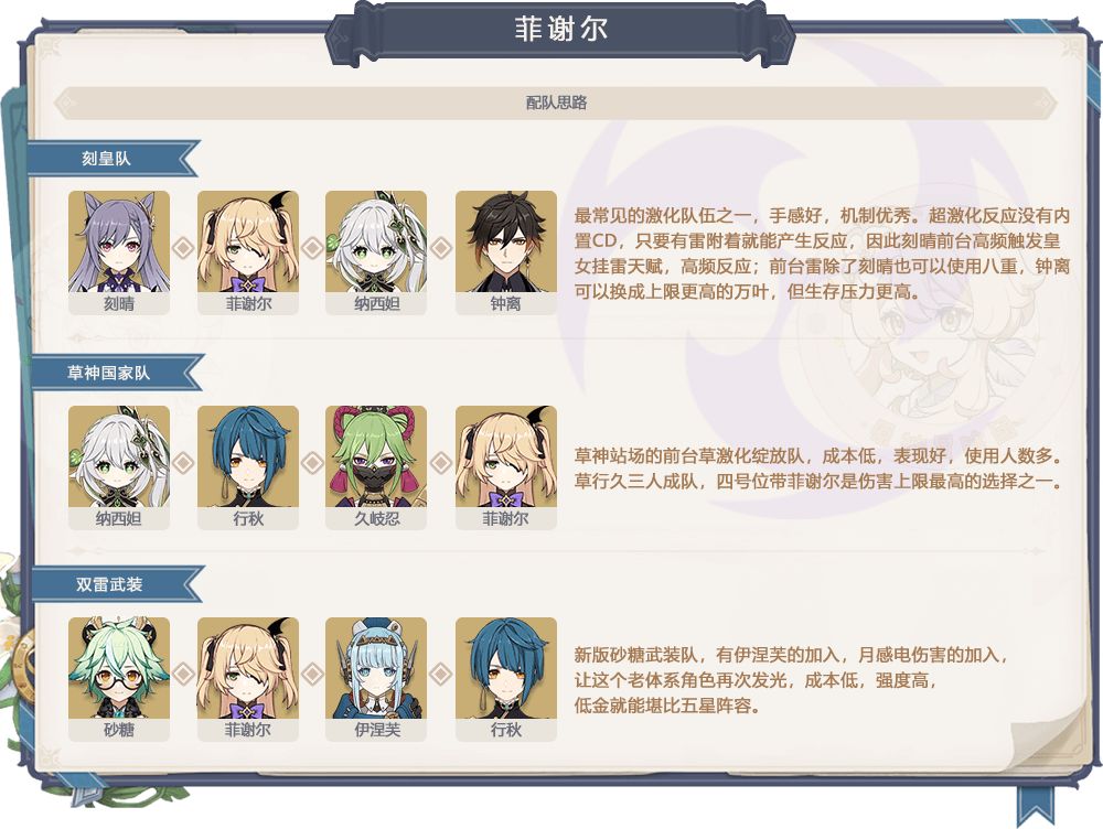 4、菲谢尔抽取建议:关键命座在6命,在合适的队伍种有很强力的表现,差1-2个满命的可以适当垫一下,前提是用的上