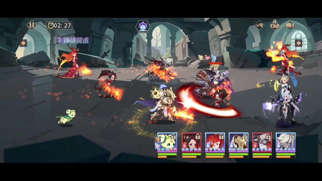 3、猩红满蓝时敌方附灵放2技能(可以理解为秒杀技能,对能量最高的单位施放);被秒后复活,开着1技能往前冲,刚好能把对面红龙和圣女卷进来(对面附灵1和4技能伤害不是特别爆炸,打不到没关系);