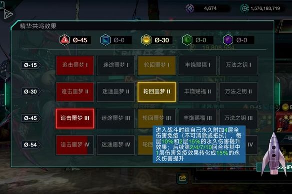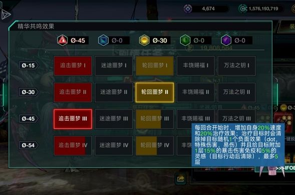 前期45红黄,后期54红黄。45红稳定打出额外的非直接伤害,一个大招触发16段红45效果,实战中约为2400%的非直接伤害,考虑情况为海螺庇护后4个单位触发满额伤害。而45黄的35增伤和25免伤在实战中通常无法吃满效果,吃满需要每回合打出1250%攻击力的伤害,普攻回合有概率打不满。