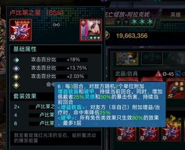 卢比莱,2卢提供20爆伤10灵感,4卢的减爆伤效果也能限制敌方c位,6卢每三回合提供高额爆伤、灵感和破甲,但尴尬的时,没有弟弟的蜘蛛通常第二个回合开大,第三个回合普攻,但只需要一个紫卡弟弟,蜘蛛第三回合就能连着开大,同时吃满黄45和6卢效果,即使没有6卢,弟弟对于蜘蛛也是质的提升,因此对于小氪玩家,能拿弟弟的活动一定要拿弟弟。