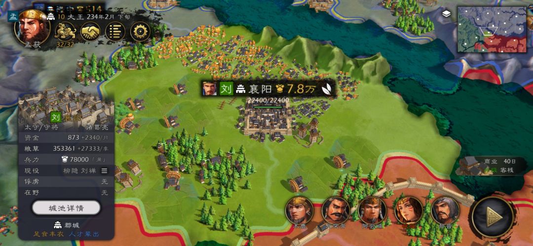 刘备势力被打到只有一座城了,以后钱数都很少不超过1000,钱都是莫名其妙消失的他也没出兵,所以兵满了也没有出兵,刘备的武将忠诚都掉到了3,从刘备只有一座城时就一直这样了开始摆烂了是吧