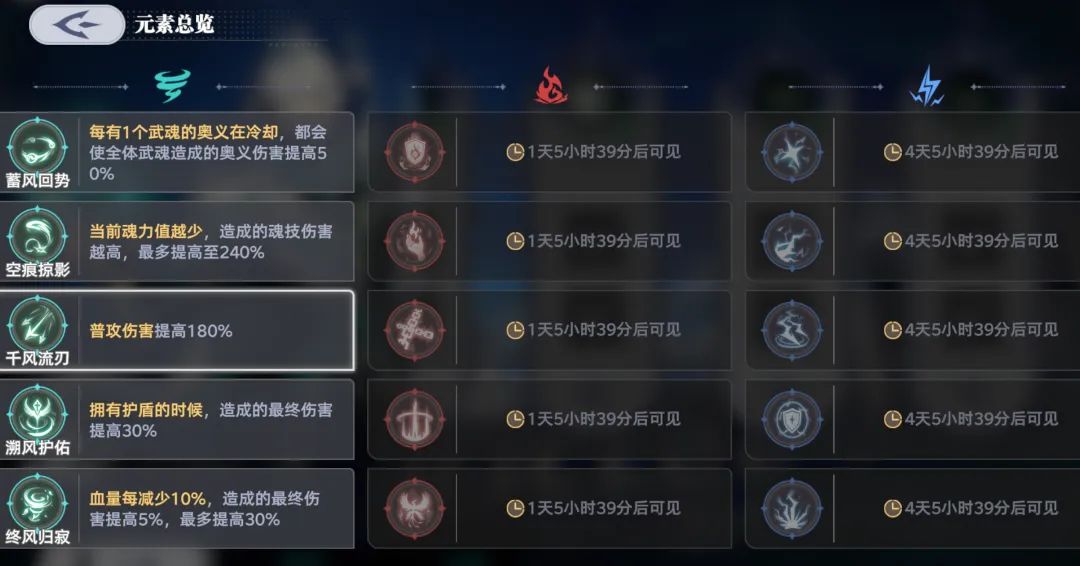 此外在完成了试炼部分的5个关卡后,我们是可以获取5个不同类型的增益buff的,其中每个buff都有不同的针对性优势,这里做个简要总结: