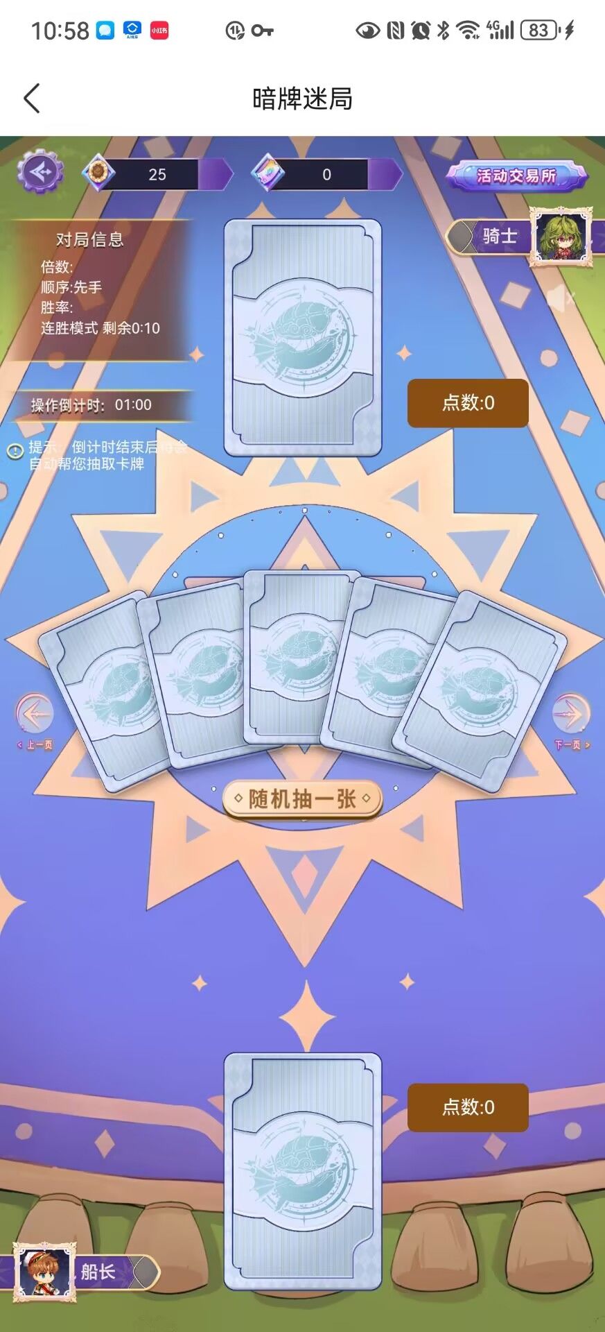 小游戏有两种模式:连胜模式和保底模式。先说结论:保底模式的收益更高。并且船长们还可以选择先/后手。从概率上来说,先后手的获胜概率完全一致,但先手有着0.2的加成,后手只有0.1。需要注意的是,只有在获胜时才会触发先手/后手奖励。失败时不会结算先后手奖励。