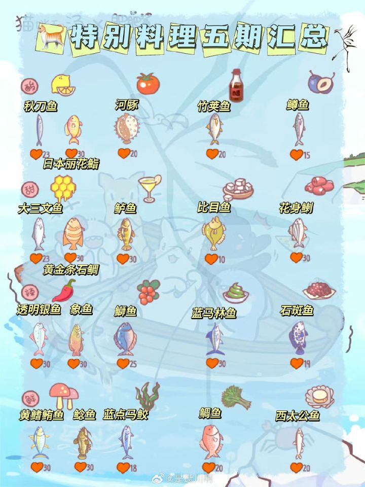 目前已经成功制作的特别料理,在选中鱼以后,点击调料会自动显示该特别料理对应的调料(如果有的话)