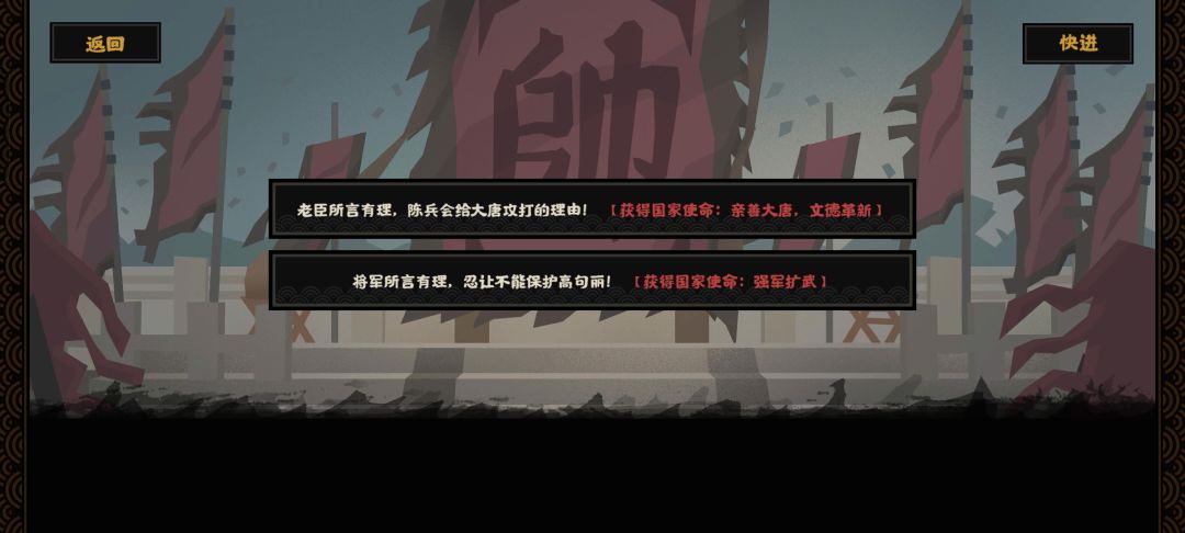 选第一个完成使命会有成就朝贡中原。