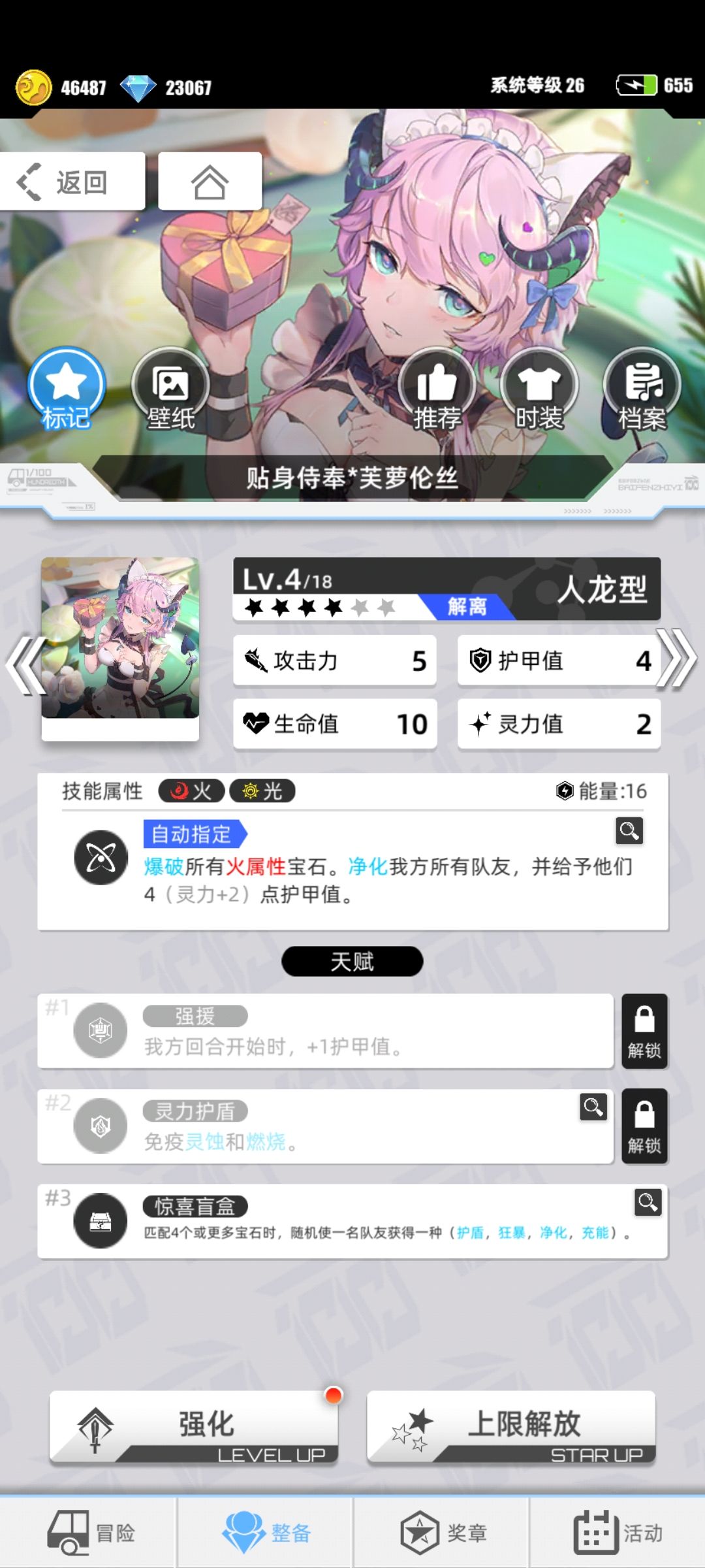 新手刚好有这几张的可以尝试一下,风天使开个三,能开二也行,贴身侍奉开个三,能抗能打,适合中高层,低层可以换个c这样快点,对面攻击越高打的越快,一号迷惑减能额外,更快加速二号收割,二号对单名敌人造成攻击力伤害并加所有队友护甲,三伤害一护甲,三号开三就开局潮汐,加一号攻击力肘击对面并爆破,四号爆破所有火宝石加所有队友护甲并净化,勋章随便带,百层可过,视频在 百层