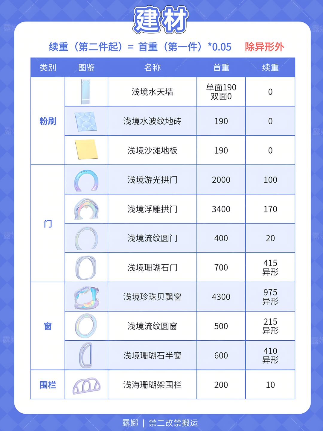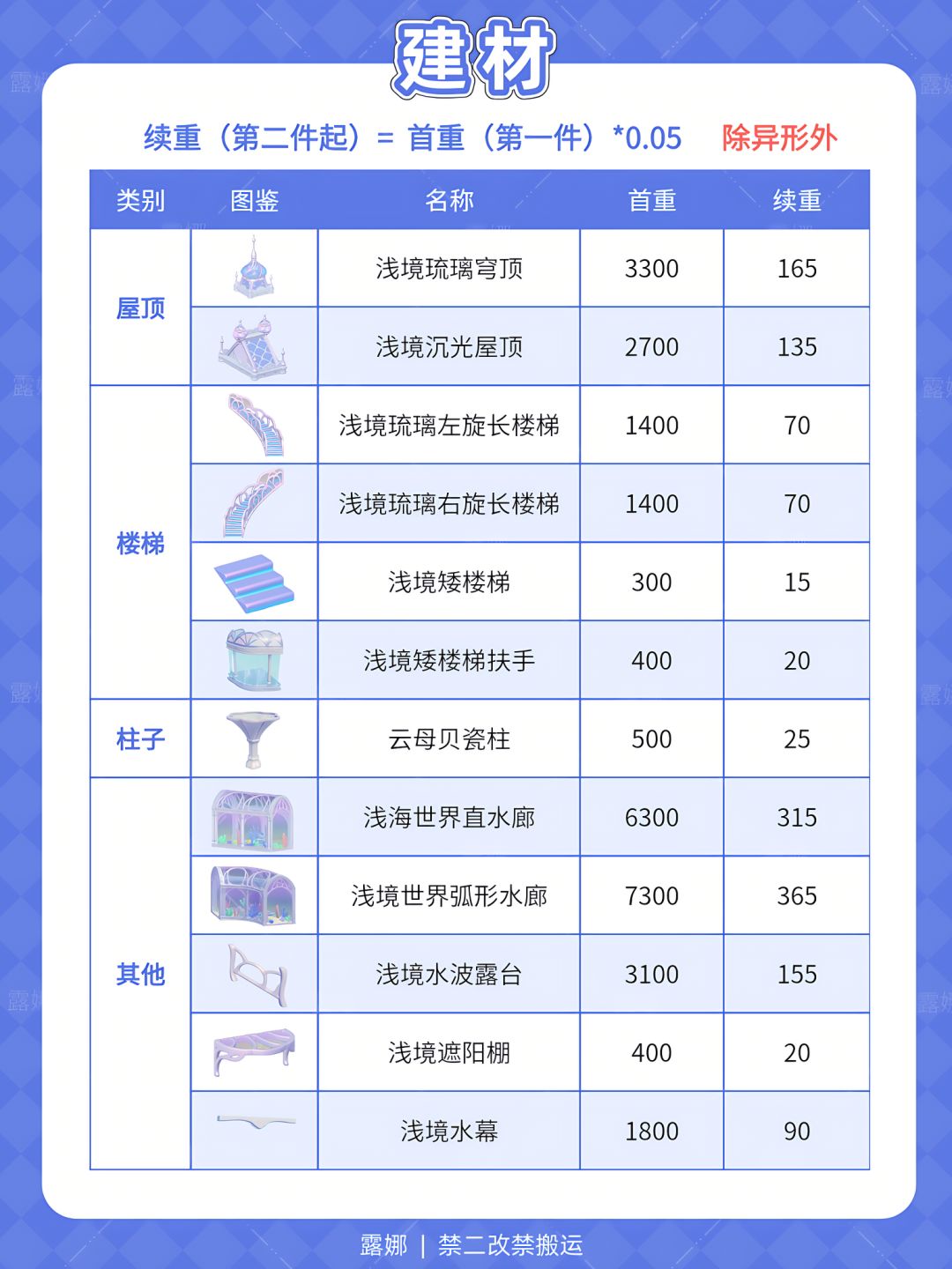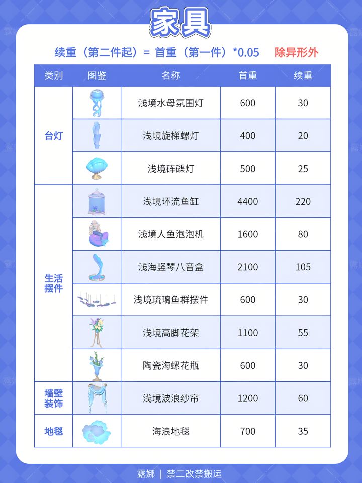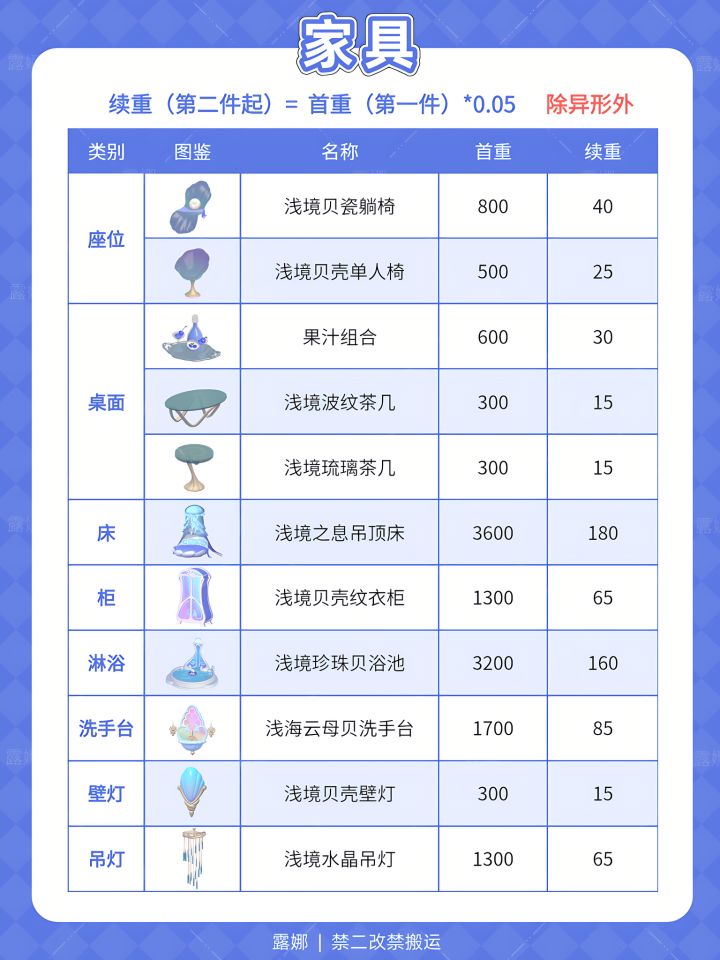 水之誓约·浅境 全家具+建材 承重表 清单