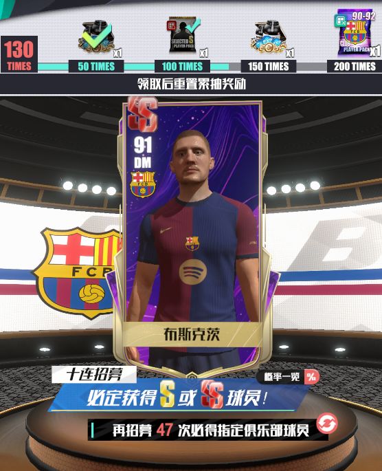 保底时,将会随机获得心仪俱乐部的球员,实现资源规划最优化~