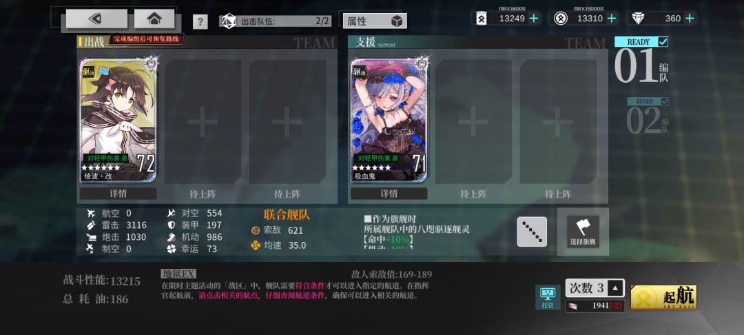 条件:航母≥1,驱逐≥2,索敌≥600